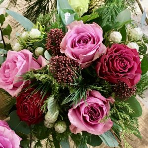 - mit kleinem floralem Akzentschmuck, der mit Silberdrsht fixiert ist