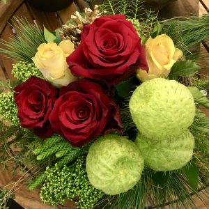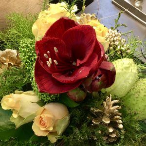 • mit kleinem floralem Akzentschmuck, der mit Silberdrsht fixiert ist