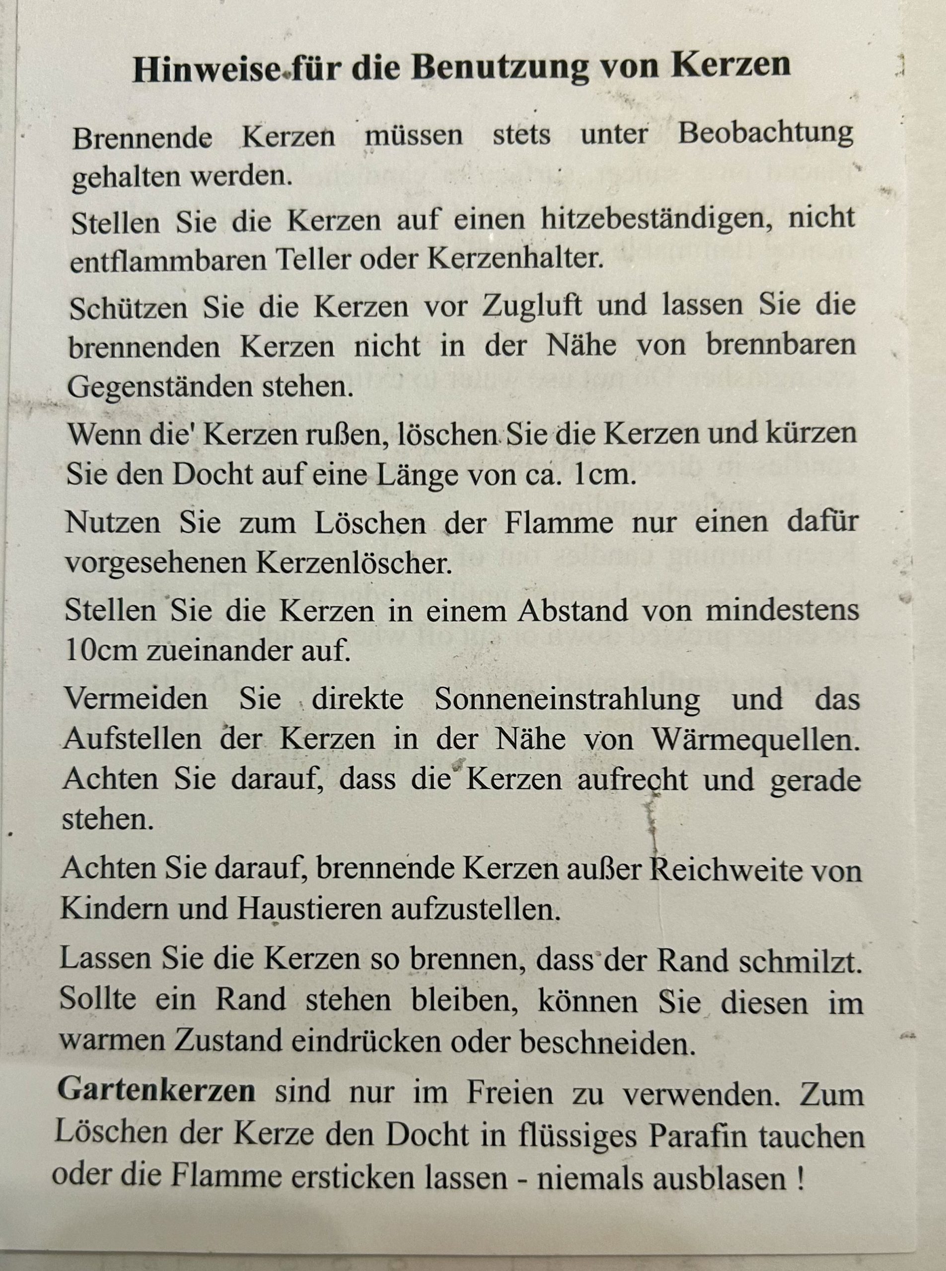 • Bitte beachten Sie unbedingt die Hinweise zum Umgang mit Kerzen in der Fotogalerie!